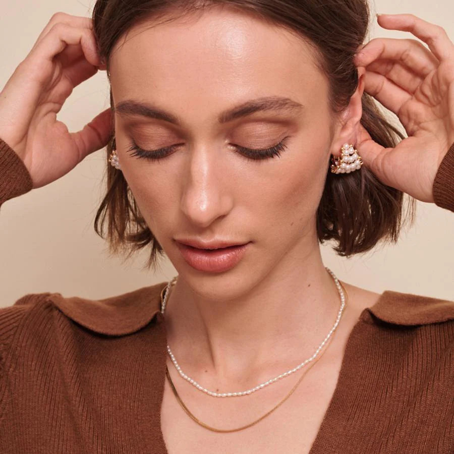 The Benn Hoops are a wide hoop style with faux pearl. A fun style perfect for the weekend.
